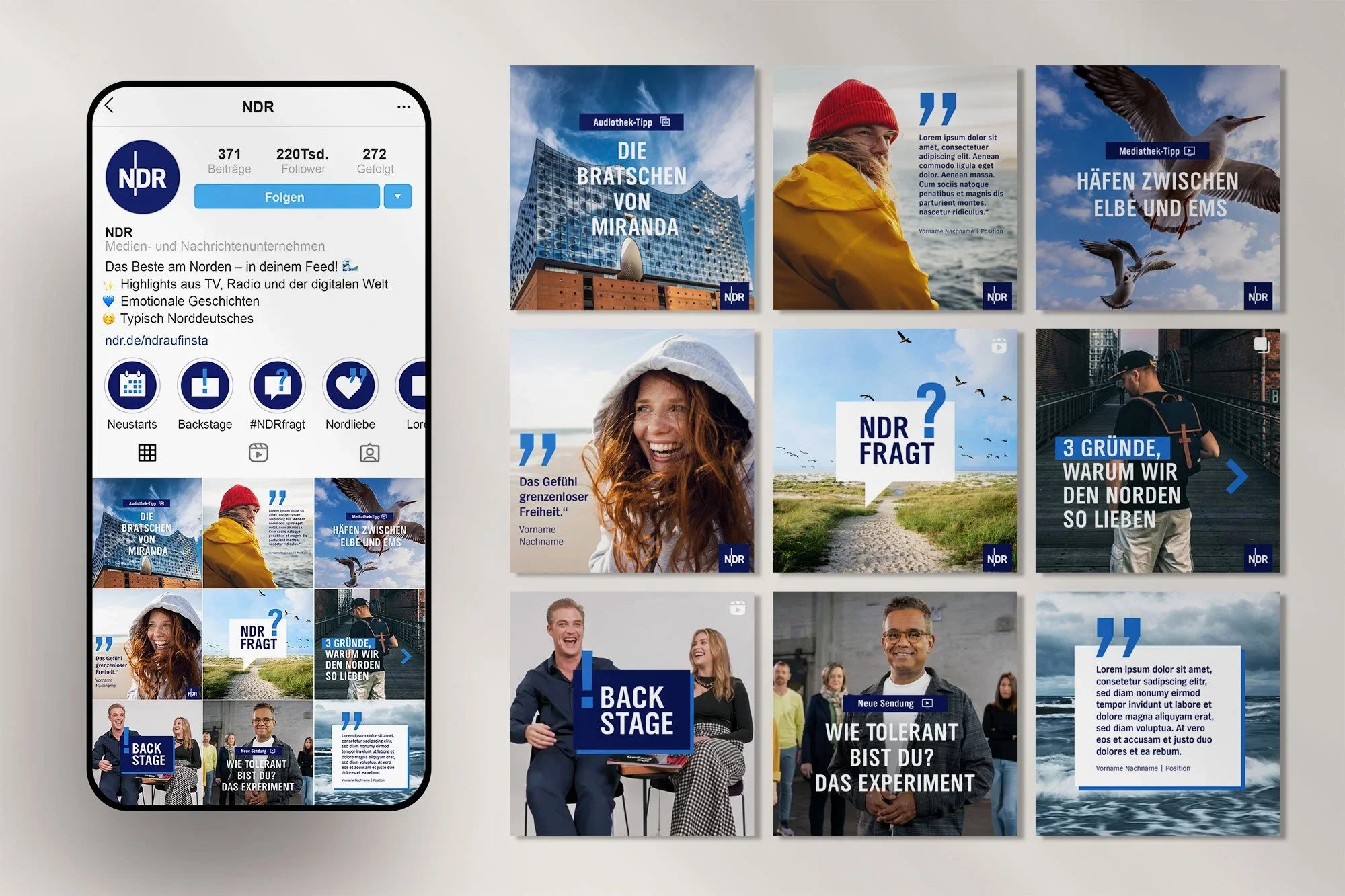 Von Kultur über Sport bis hin zum Nachrichtenkanal — wir entwickelten vielfältige Kanaldesigns für den NDR nach einer strategischen Herleitung im Rahmen des Corporate Designs des NDR.