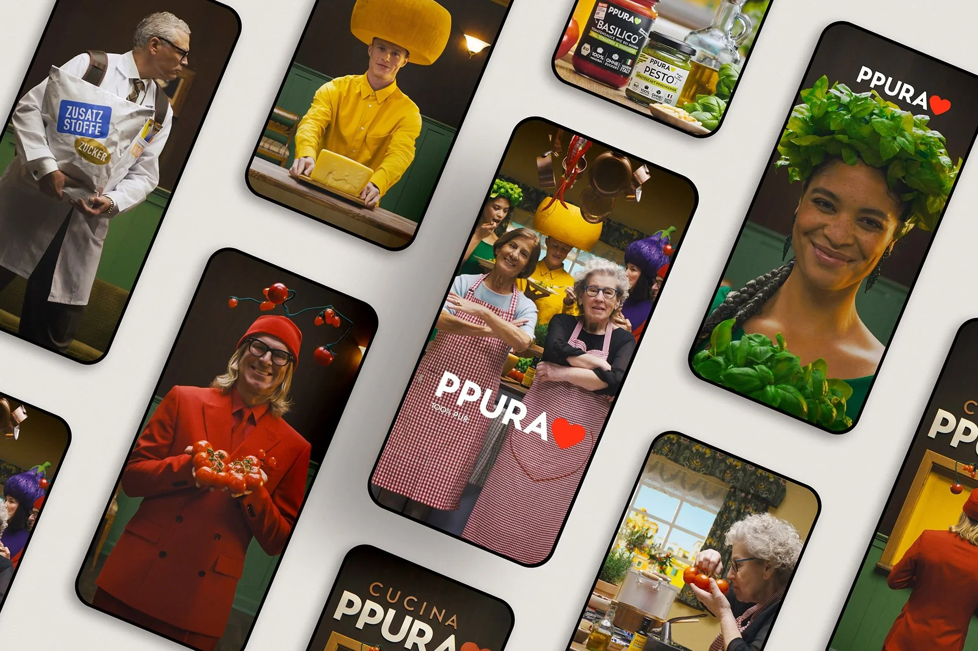 Das Besondere: Die Hauptdarsteller der Kampagne sind die echten Mammas der Gründer von PPURA, beide über 90! Ihre Mission: Keine Mistzutaten in die PPURA Küche lassen. In einem disruptiven Look & Feel.